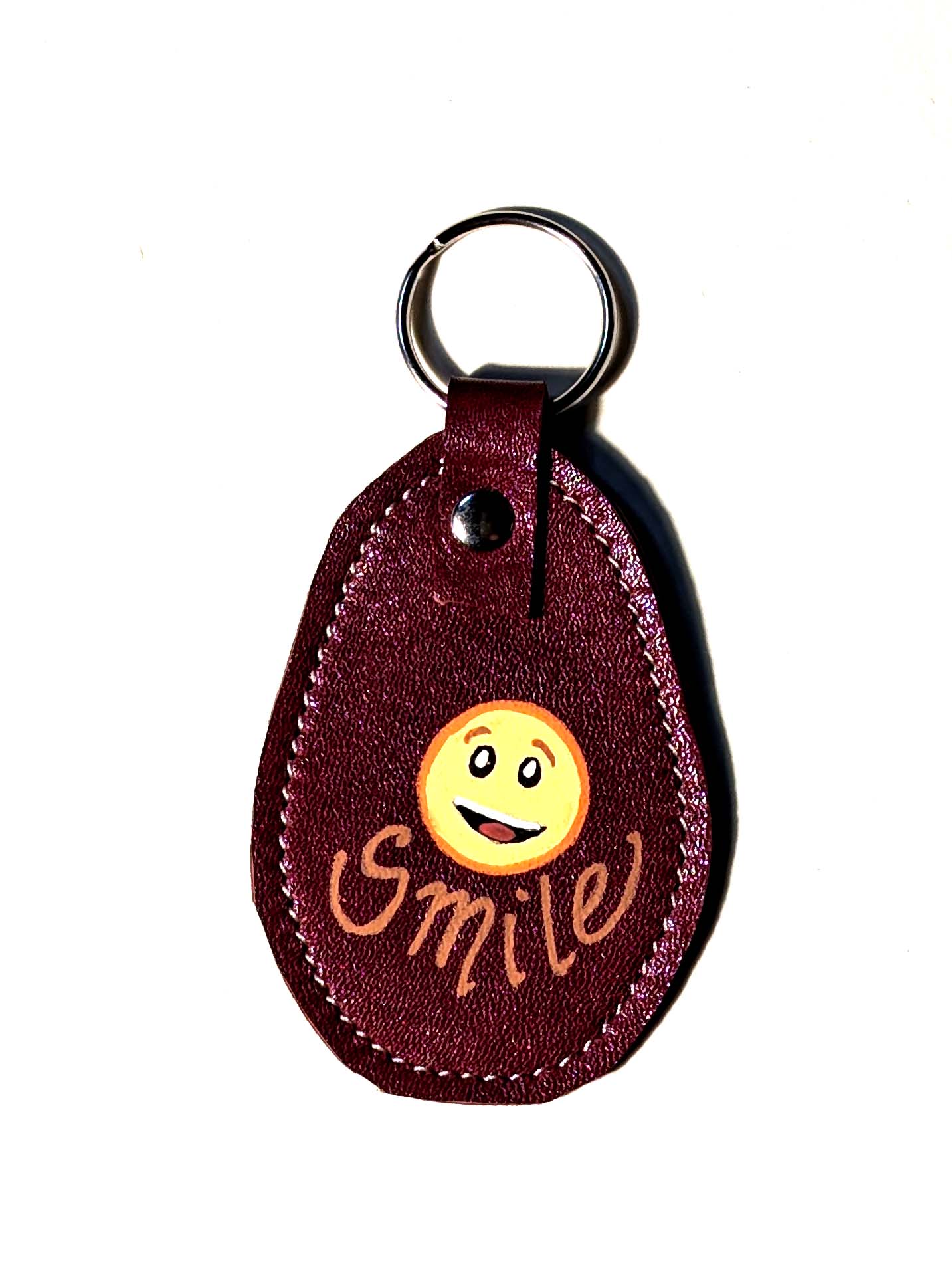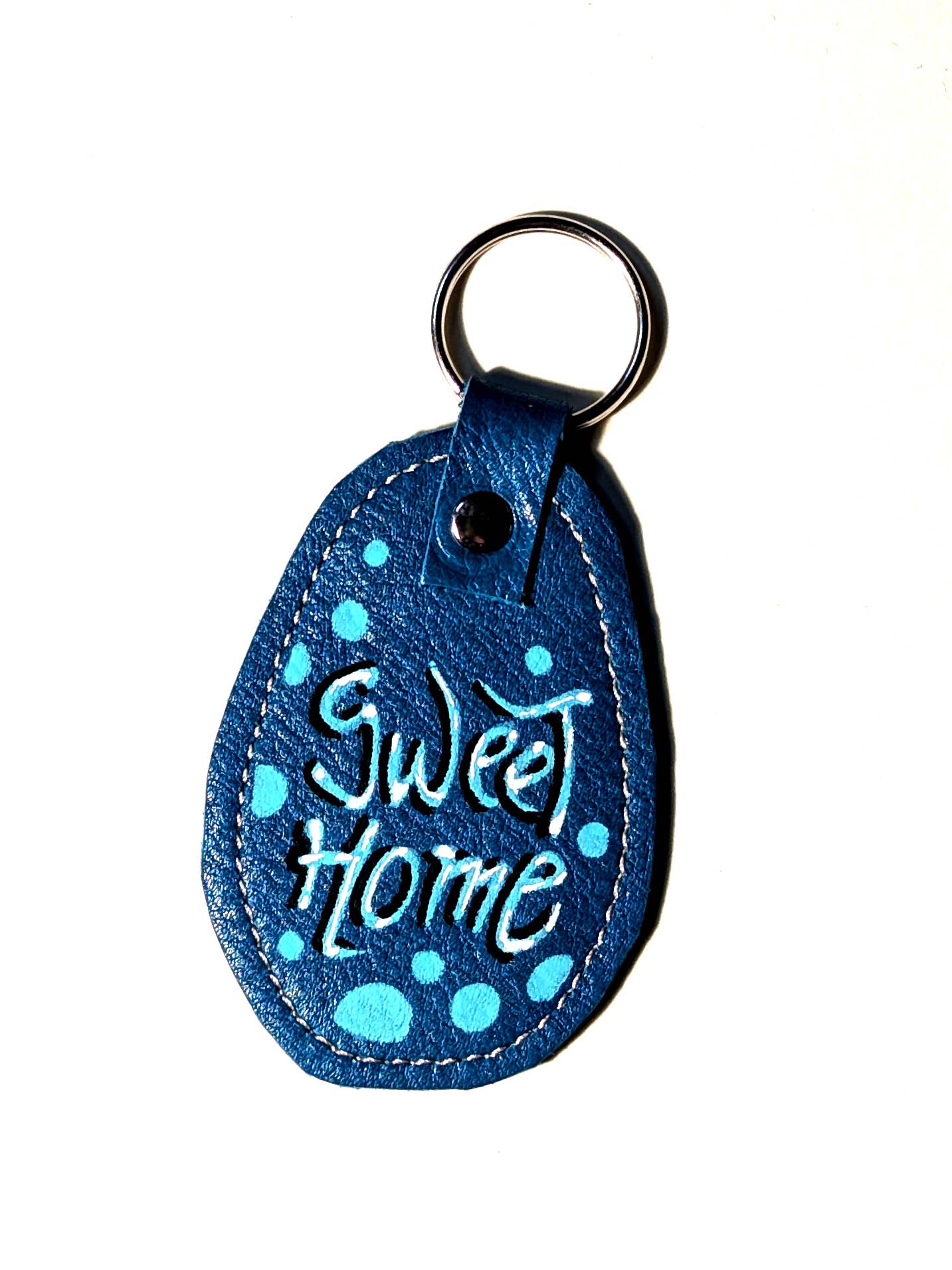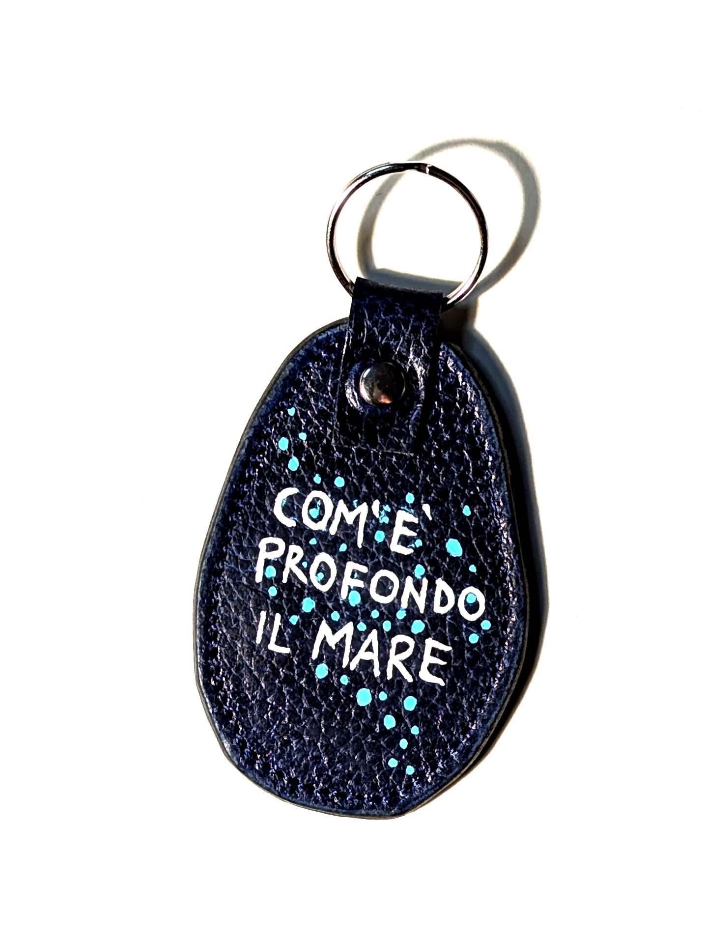 Portachiavi fatto a mano e decorato a mano con Uni Posca. Materiale: pelle Misura della parte in pelle: 7×5 cm