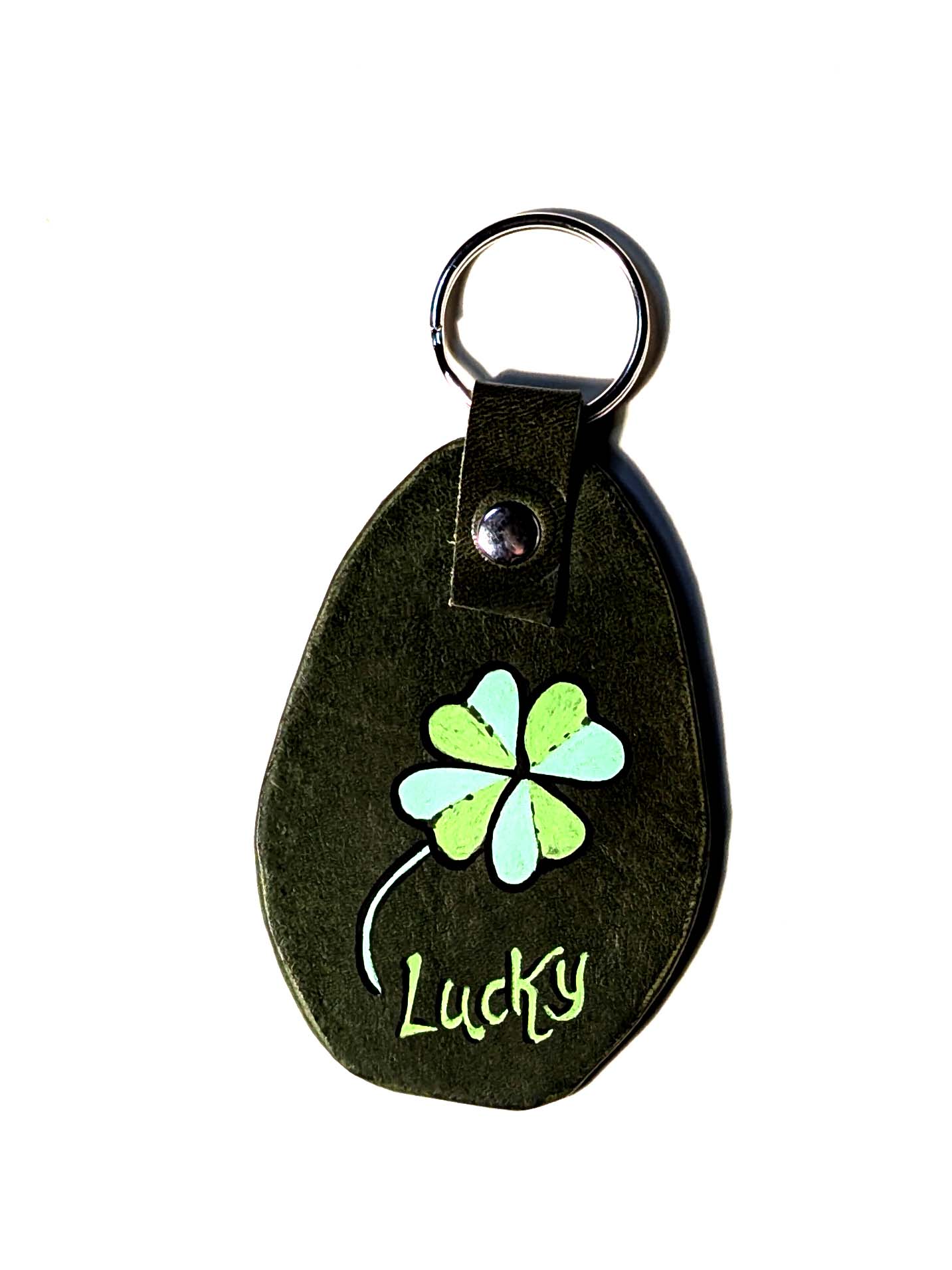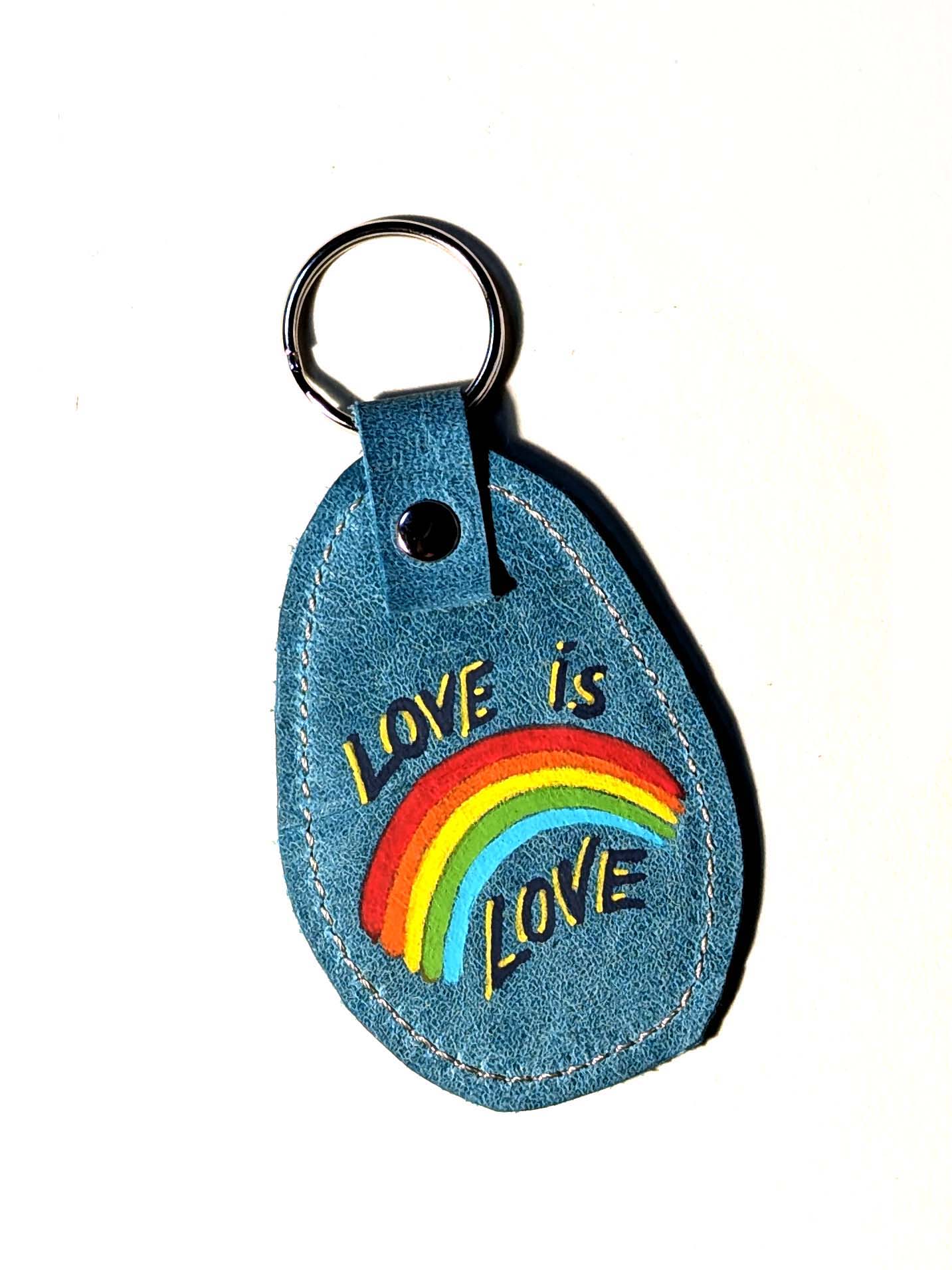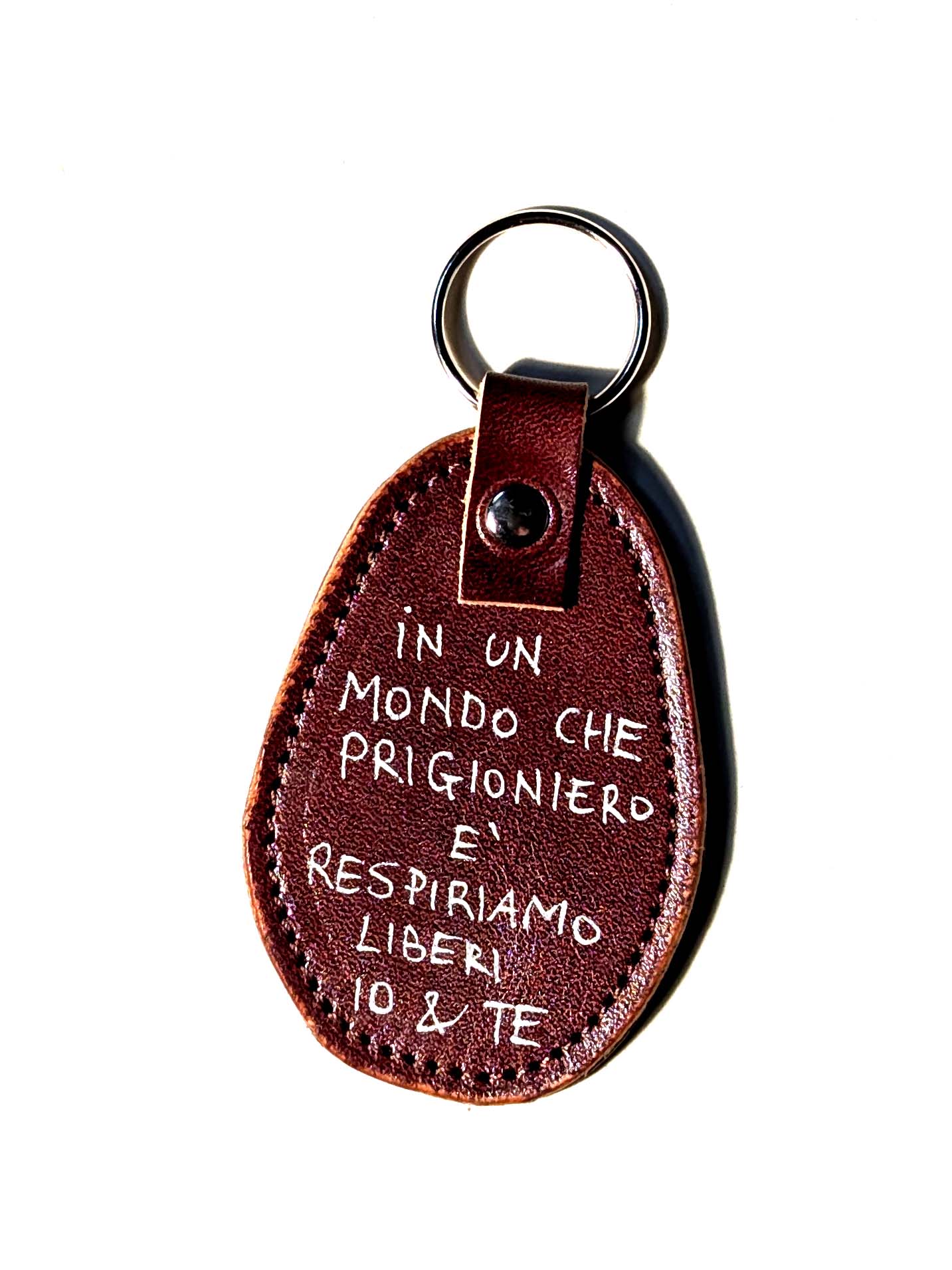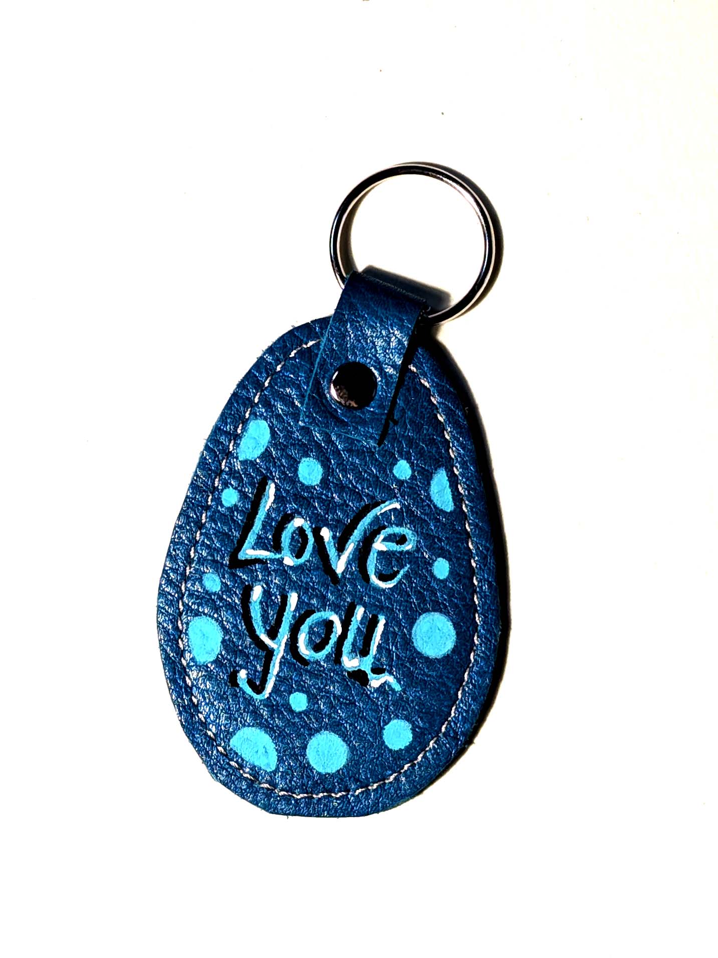 Portachiavi fatto a mano e decorato a mano con Uni Posca. Materiale: pelle Misura della parte in pelle: 7×5 cm