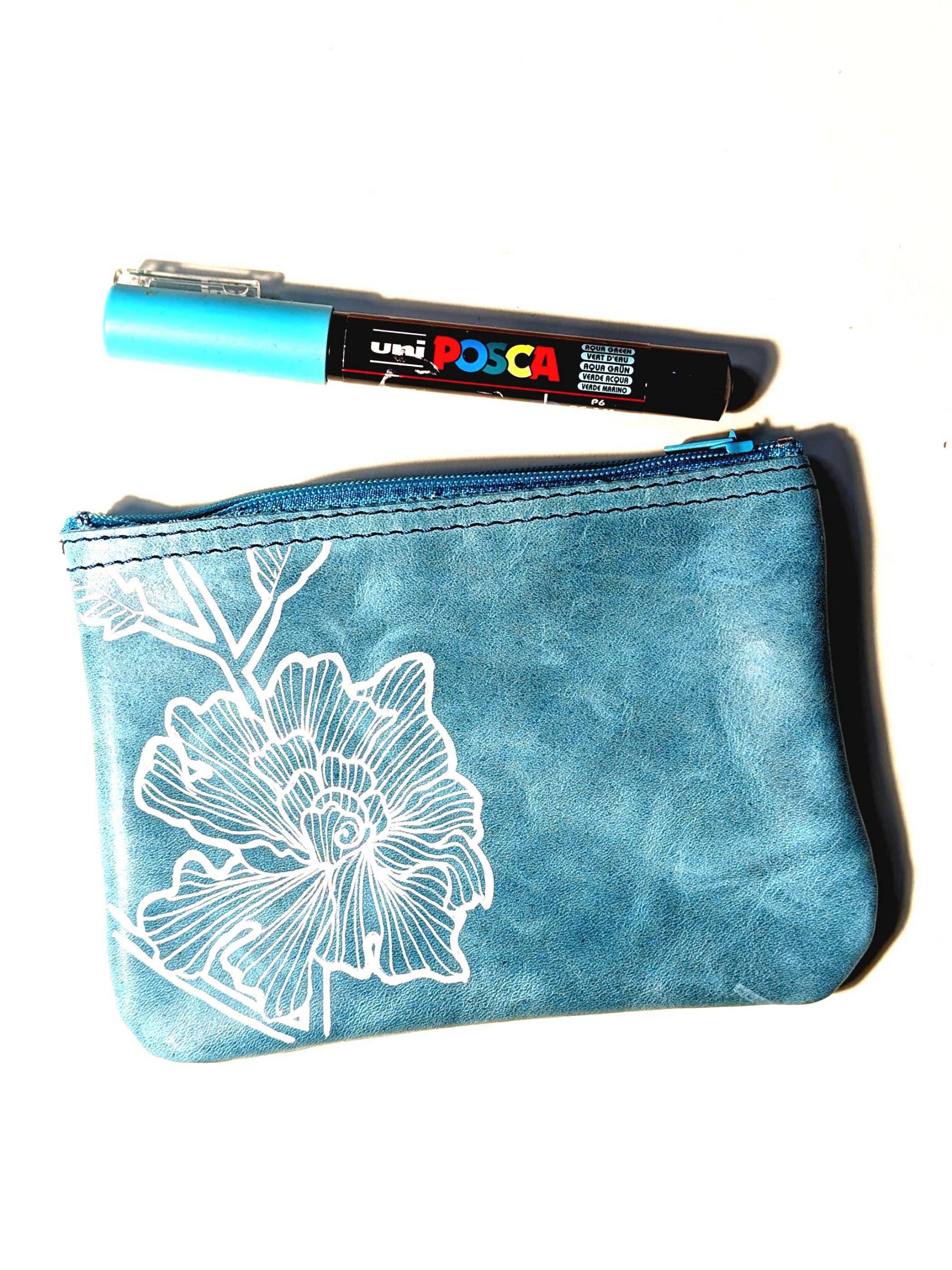 Bustina fatta a mano e decorata a mano con Uni Posca. Materiale: pelle Misura: 11×18 cm