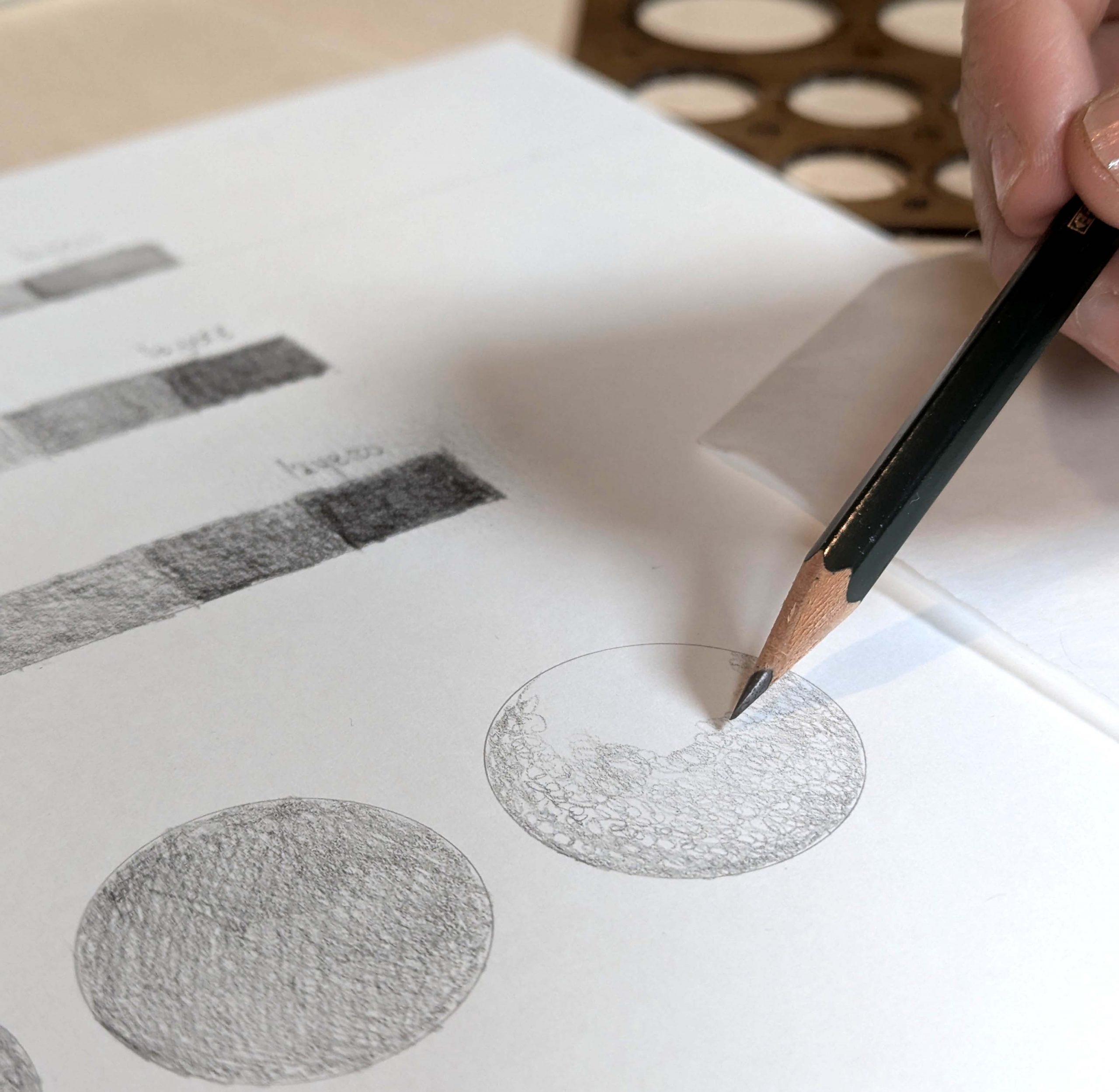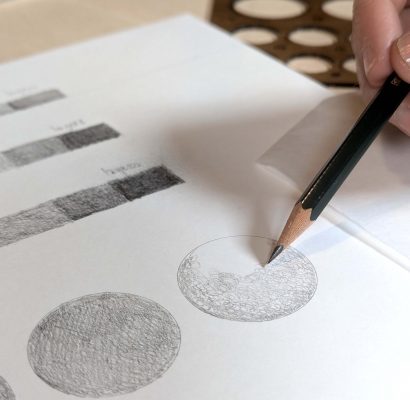 - Advanced technique demonstration. Demonstration of micro-circular hatching using a needle-point pencil.