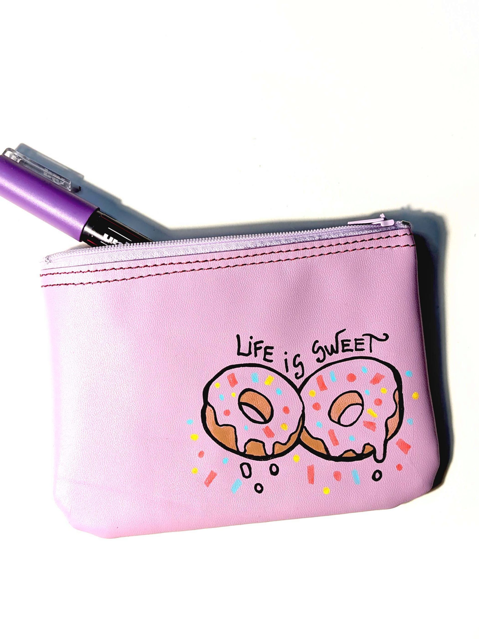 Pouche handmade and hand-decorated with Uni Posca markers. Material: leather Size: 11×18 cm